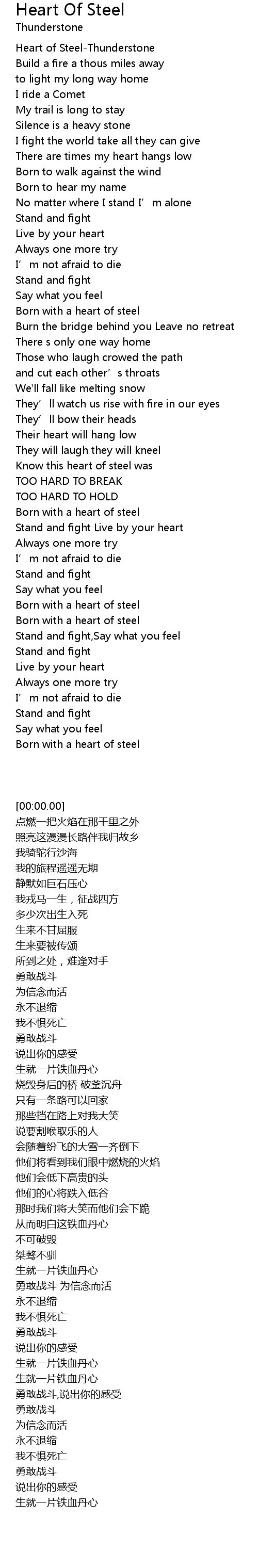 | [00:00.00] | Heart of Steel-Thunderstone |