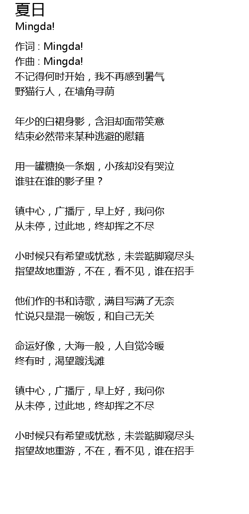 | 作词 : Mingda! | |