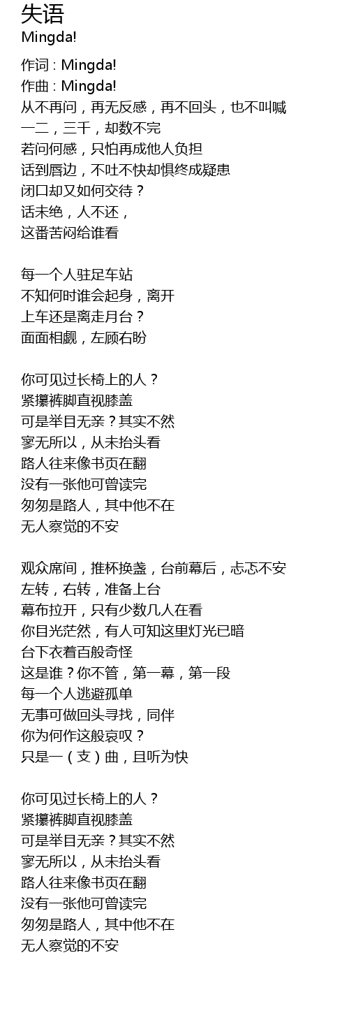 | 作词 : Mingda! | |