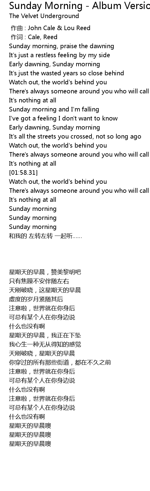 | [00:00.00] | 作曲 : John Cale & Lou Reed |