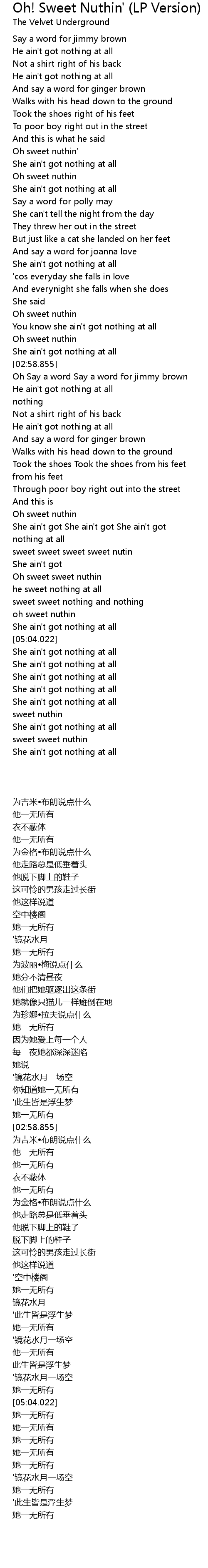 | [04:53.118] | sweet sweet nothing and nothing |