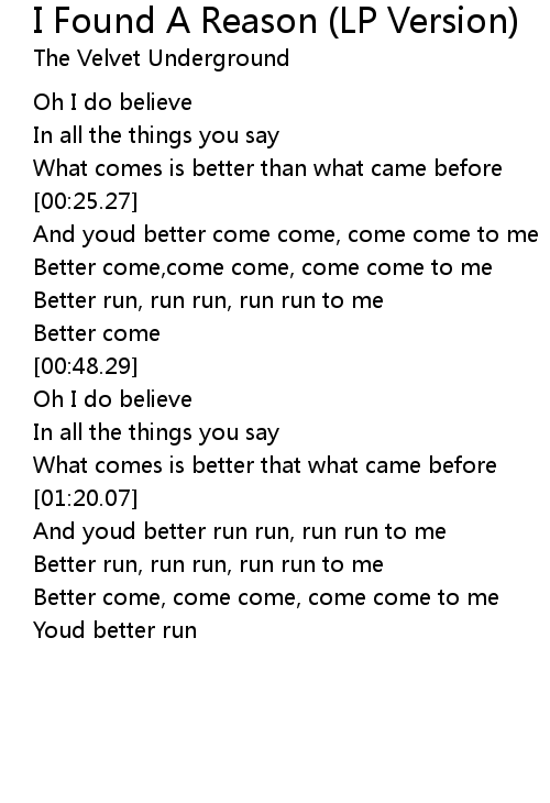 I Found A Reason (LP Version) Lyrics