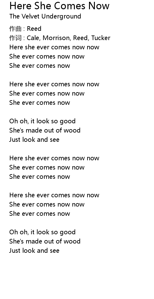 | Song | Here She Comes Now |