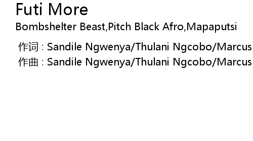 | [00:00.00-1] | zuò cí : Sandile Ngwenya Thulani Ngcobo Marcus Alexander Wyatt |