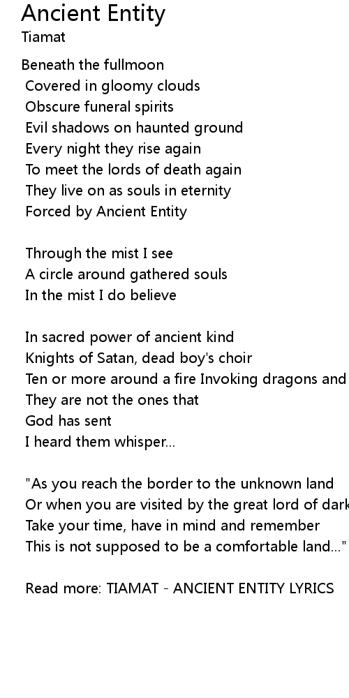 Read more: TIAMAT - ANCIENT ENTITY LYRICS |