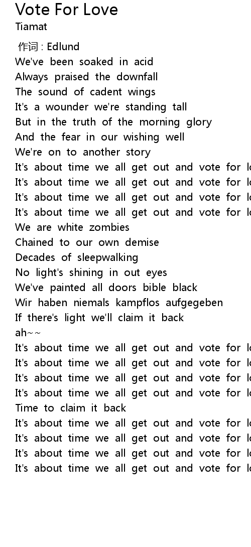 | [02:47.980] | It' s about time we all get out and vote for love |