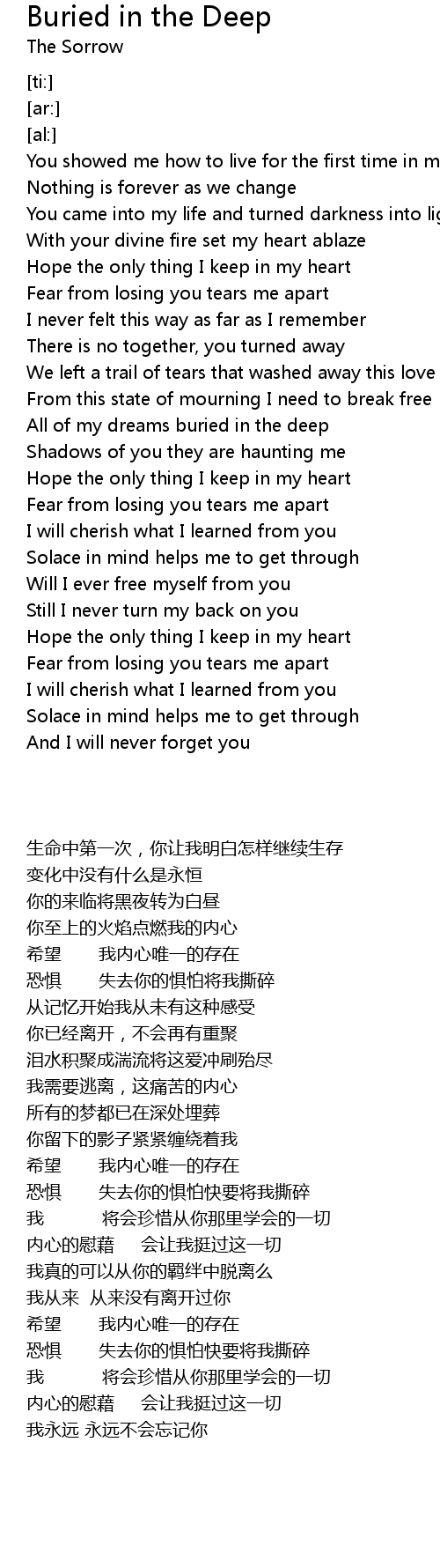 All of my dreams buried in the deep |
