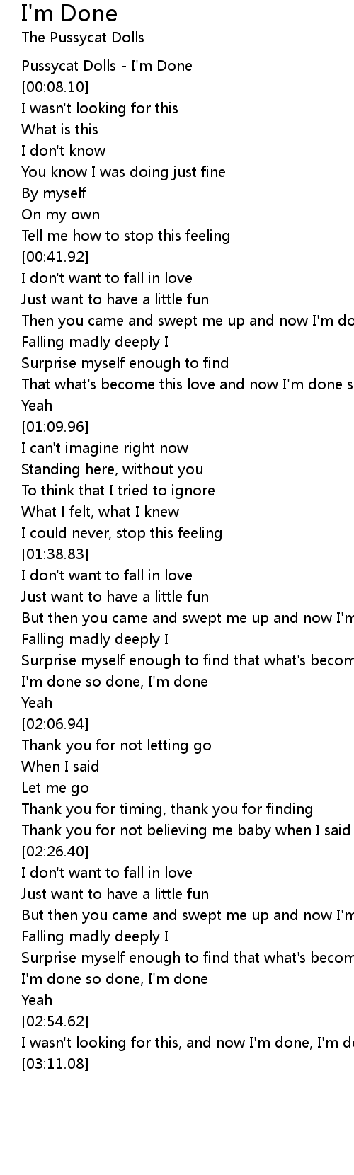 Surprise myself enough to find that what's become this love and now I'm done so done, I'm done |