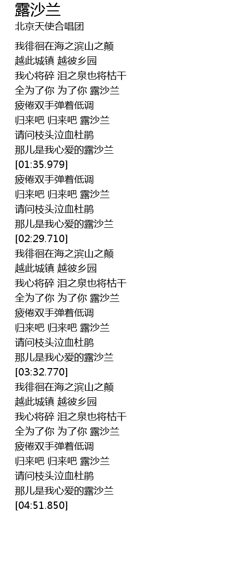 | [04:33.650] | 归来吧 归来吧 露沙兰 |
