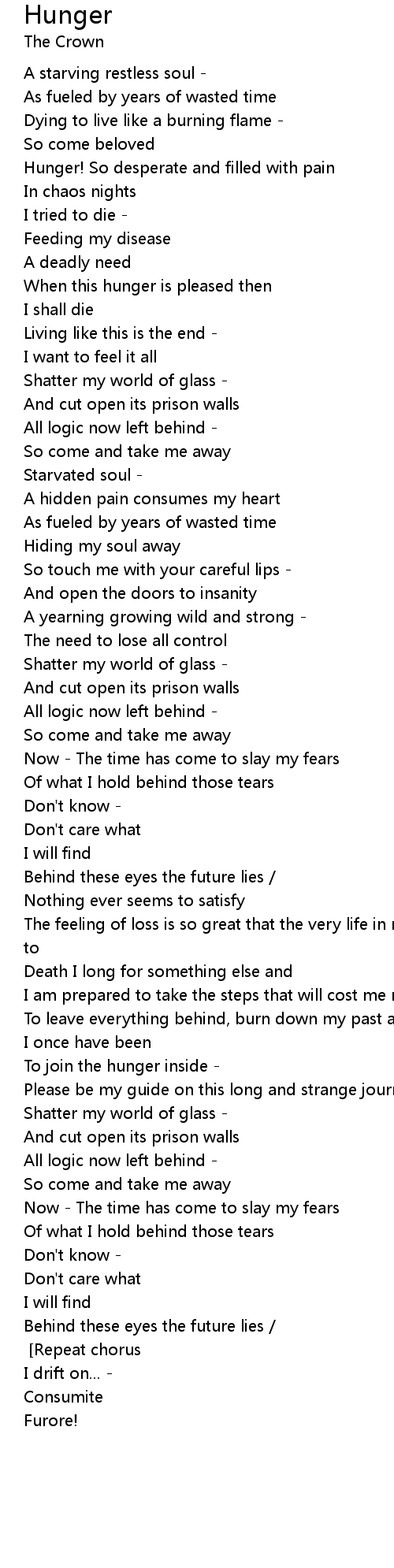Nothing ever seems to satisfy [Lead: M. Sunesson] [Repeat chorus] |