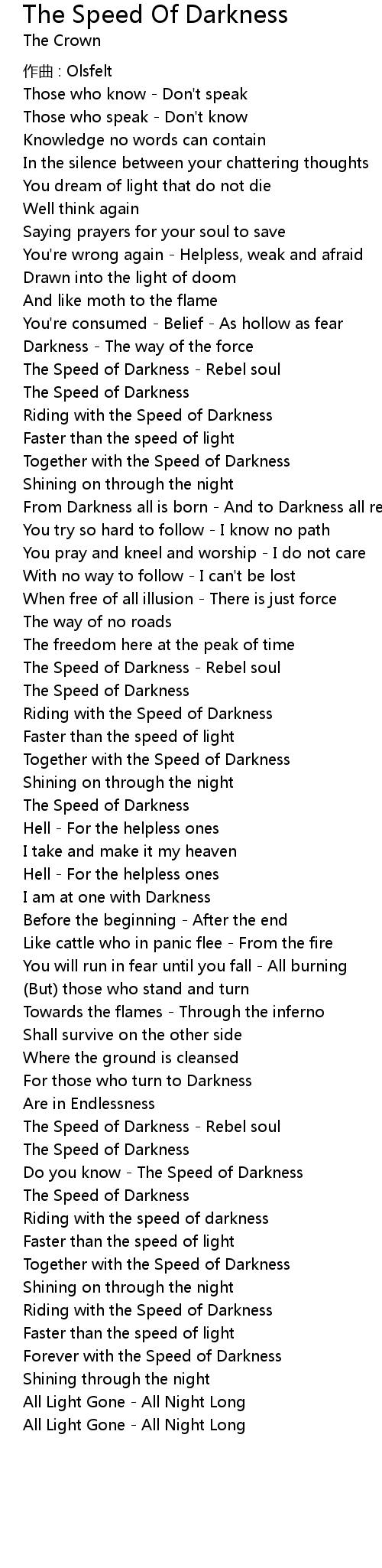 | Do you know The Speed of Darkness | |