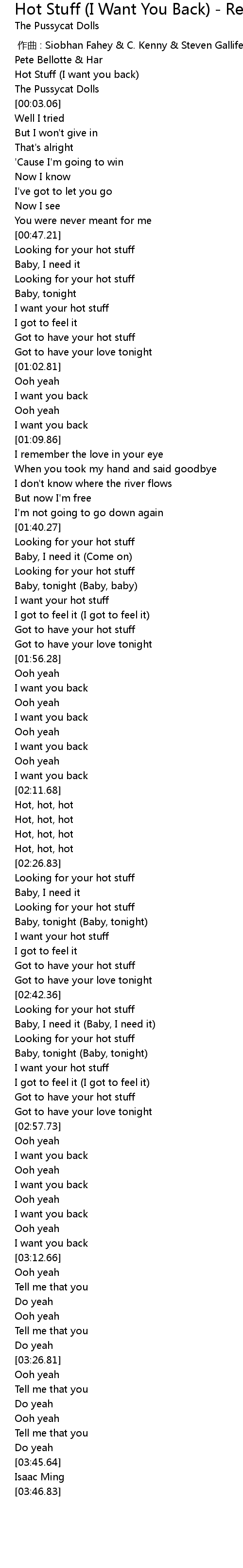 | [01:44.61] | Looking for your hot stuff |