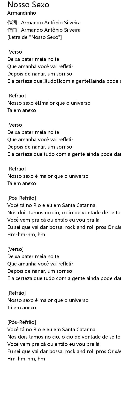 | Letra de " Nosso Sexo" | |