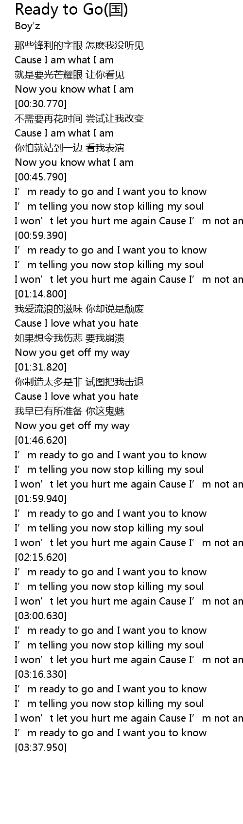 | [02:48.100] | I' m ready to go and I want you to know |