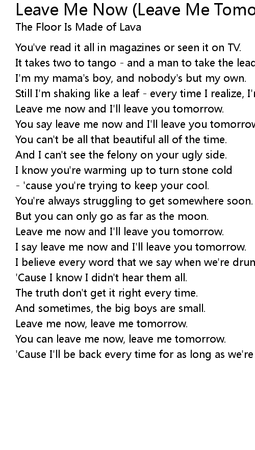 I say leave me now and I'll leave you tomorrow. |