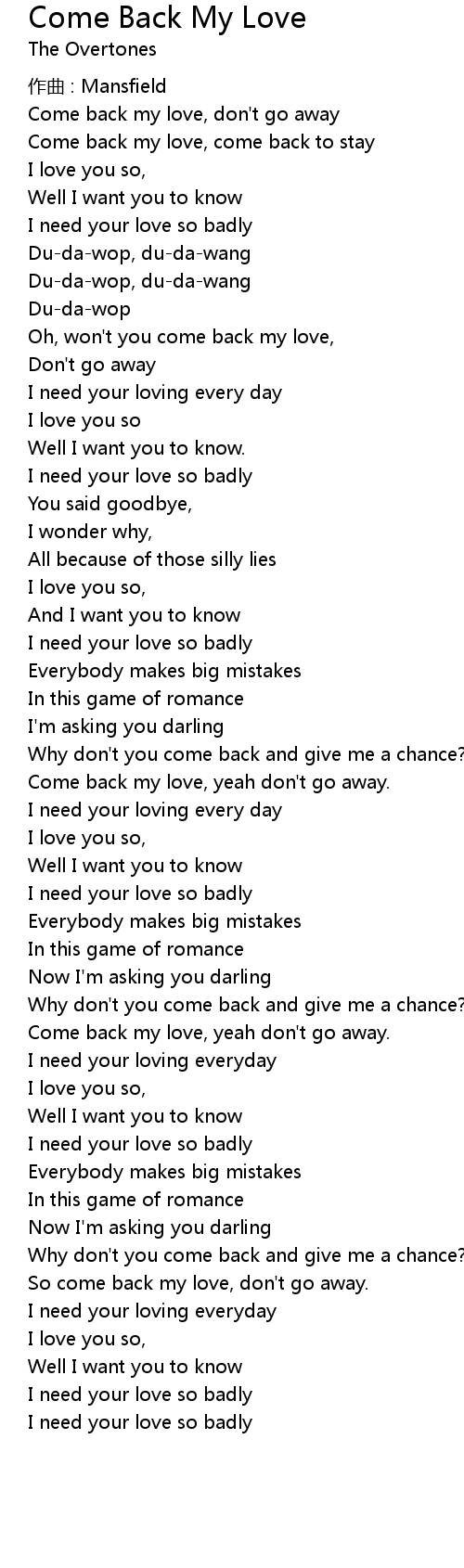 | Come back my love, come back to stay | |