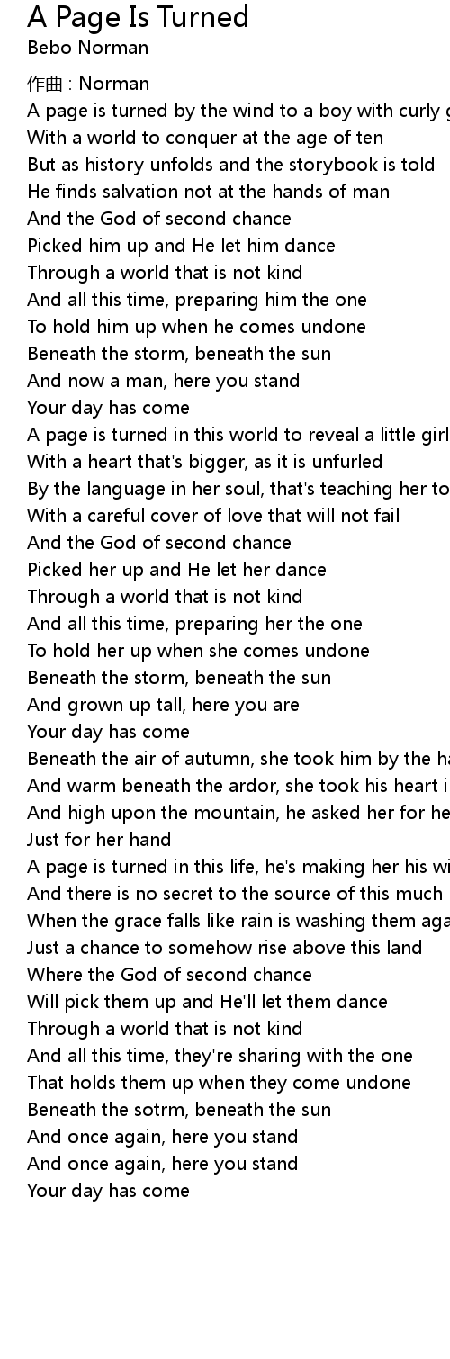 | Song | A Page Is Turned |