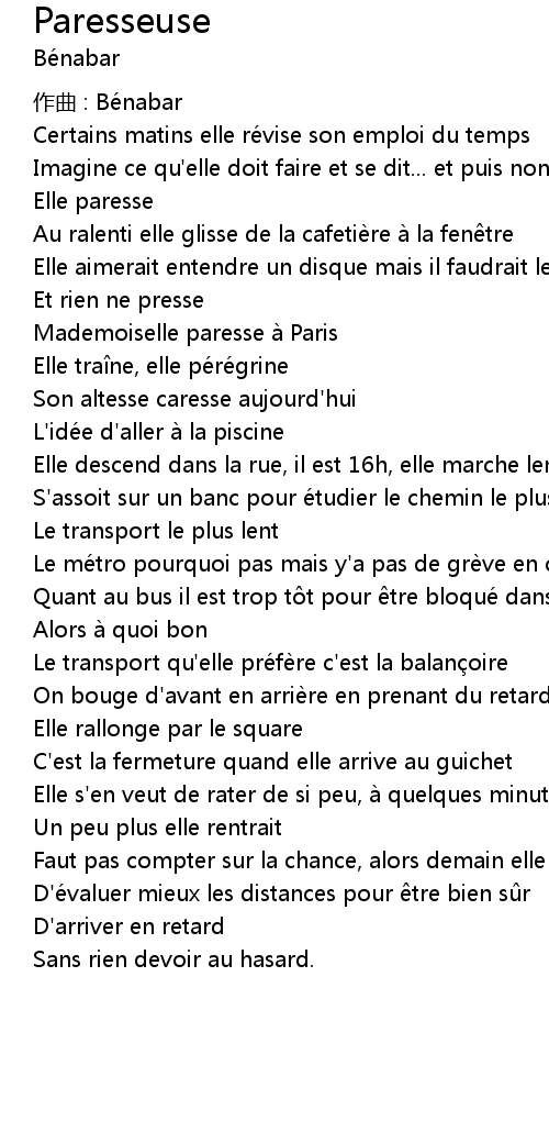 | Song | Paresseuse |