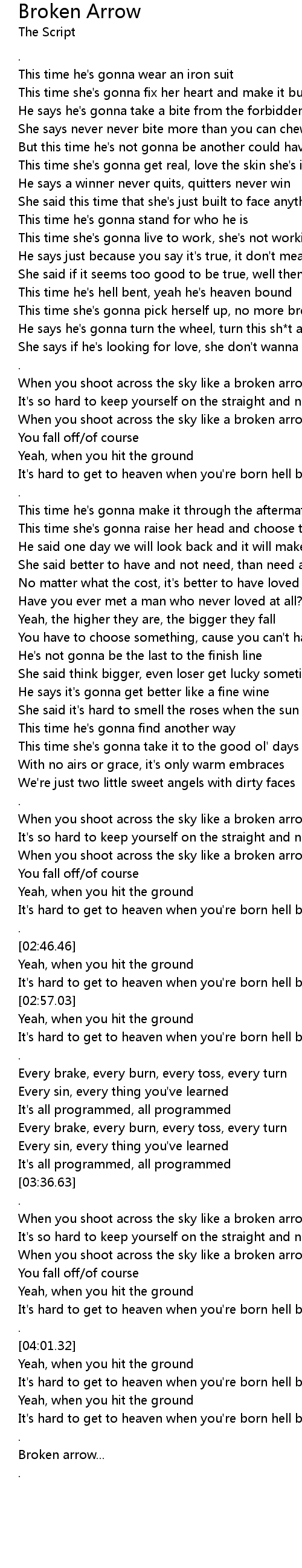 When you shoot across the sky like a broken arrow |