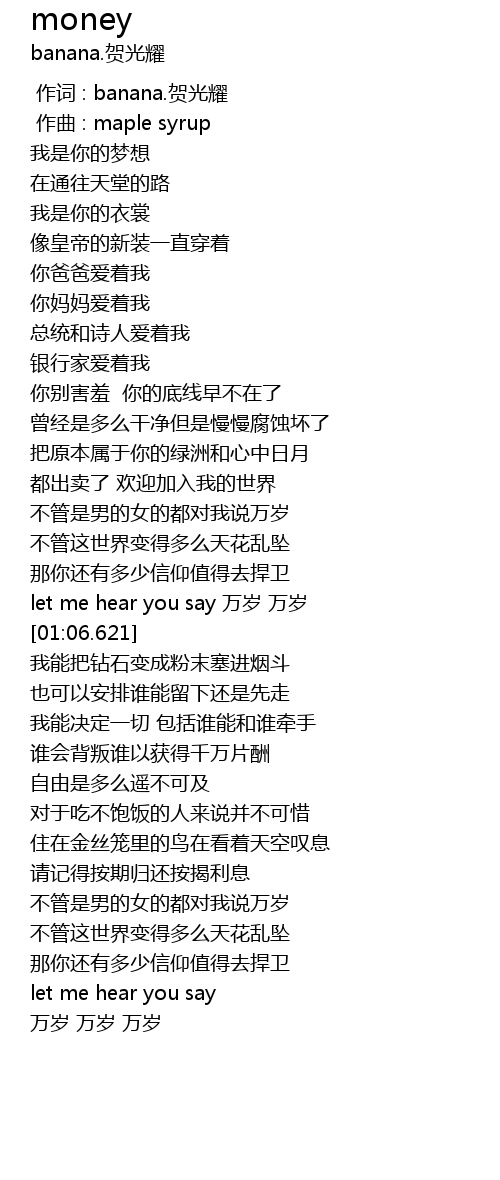 | [00:00.000] | 作词 : banana.贺光耀 |