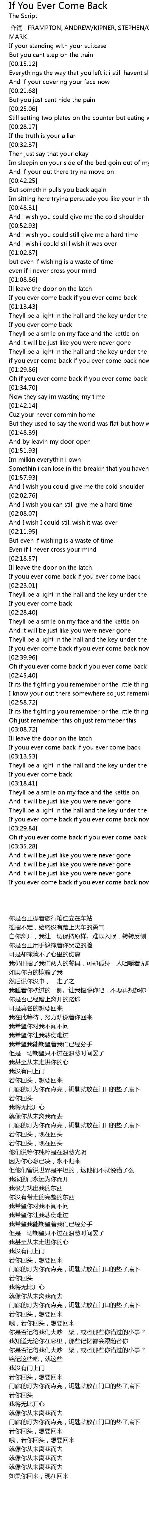 | [01:10.88] | If you ever come back if you ever come back |