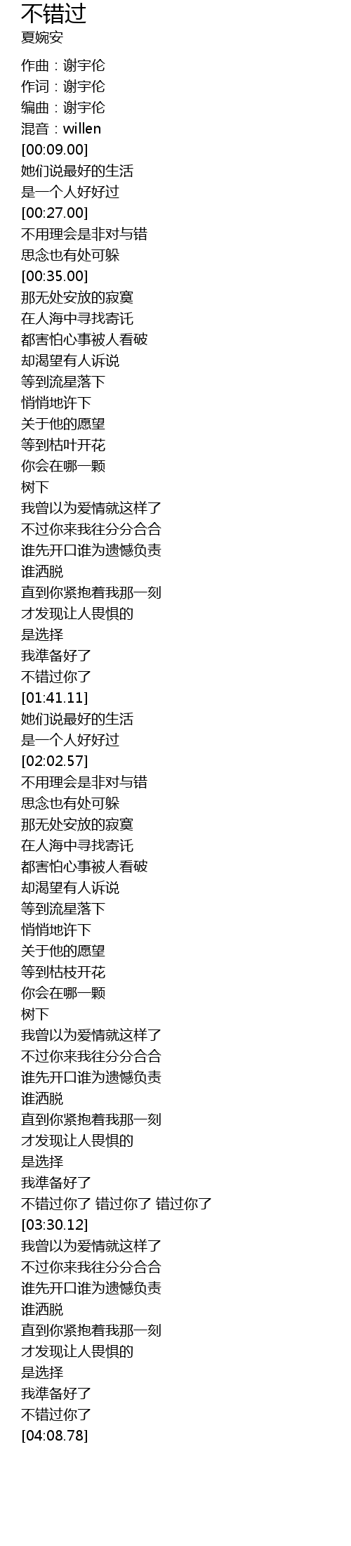 | [04:02.78] | 不错过你了 |