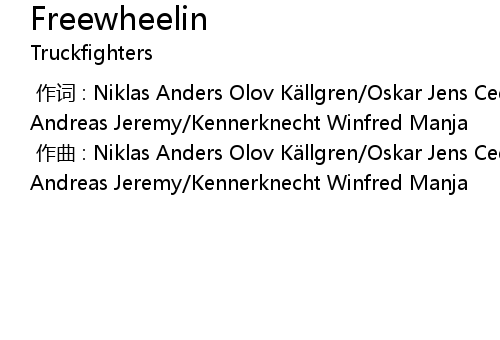 | [00:00.000] | zuo qu : Niklas Anders Olov K llgren Oskar Jens Cedermalm Von Ahn Andreas Jeremy Kennerknecht Winfred Manja |