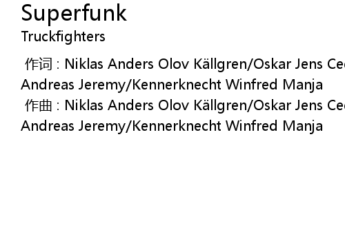 | [00:00.000] | zuò qǔ : Niklas Anders Olov K llgren Oskar Jens Cedermalm Von Ahn Andreas Jeremy Kennerknecht Winfred Manja |