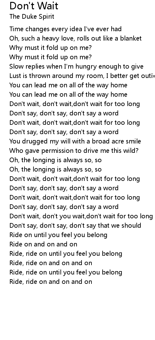 | Don' t wait, don' t wait, don' t wait for too long | |