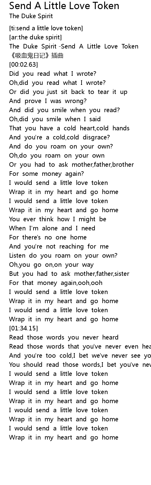 | [00:00.00] | The Duke Spirit -Send A Little Love Token |