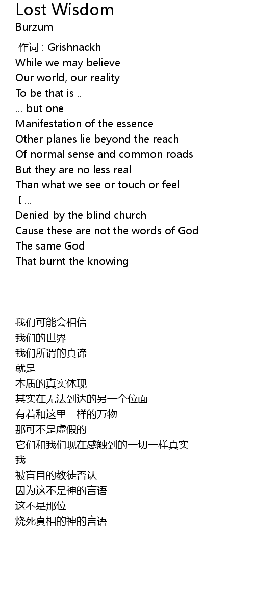 | Song | Lost Wisdom |