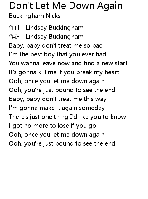 | Song | Don't Let Me Down Again |