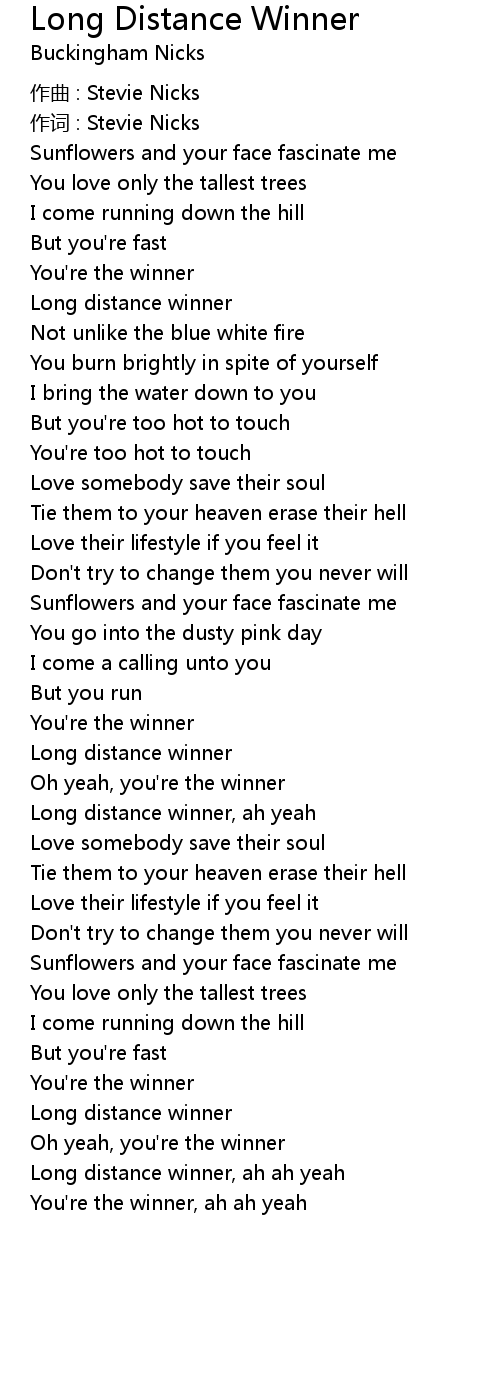 | Long distance winner, ah ah yeah | |