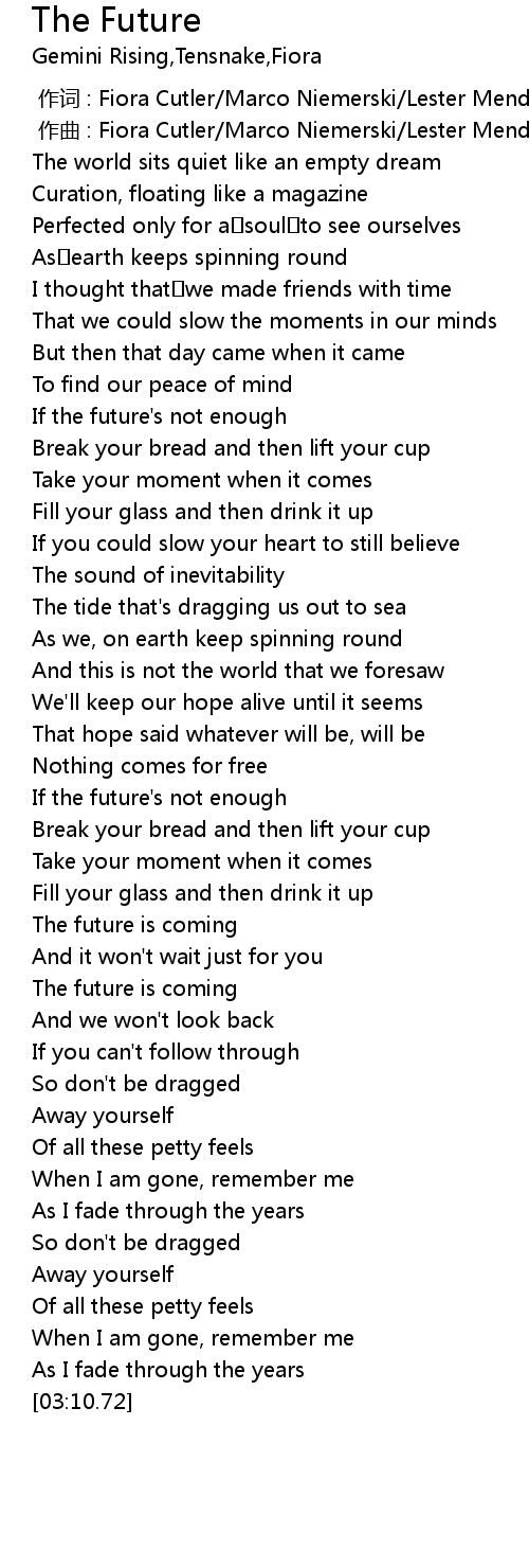 | [02:10.62] | The future is coming |