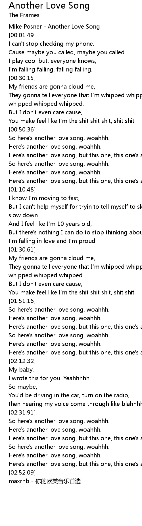 | [00:51.17] | So here' s another love song, woahhh. |