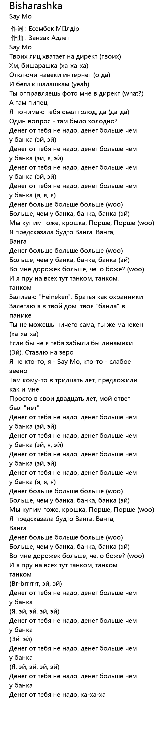 Денег от тебя не надо, денег больше чем у банка (эй, я, эй) |
