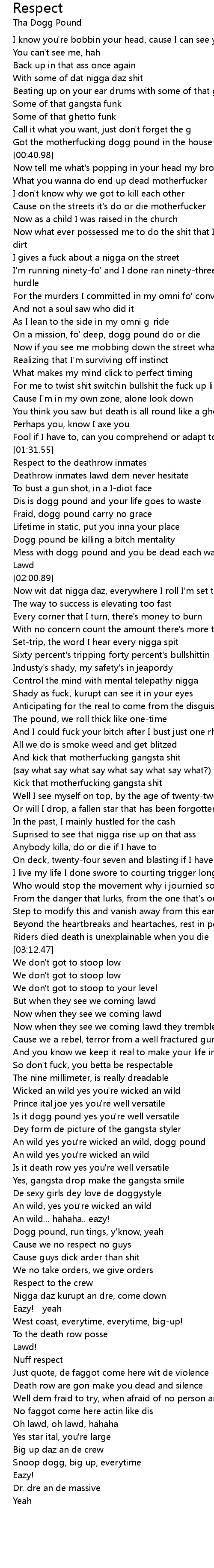 | [04:05.18] | Dogg pound, run tings, y' know, yeah |