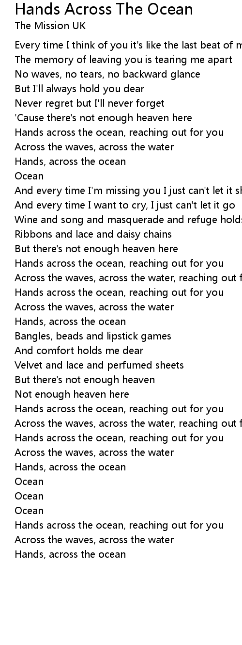 Hands across the ocean, reaching out for you |