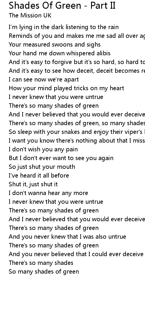 There's so many shades of green, so many shades of green |
