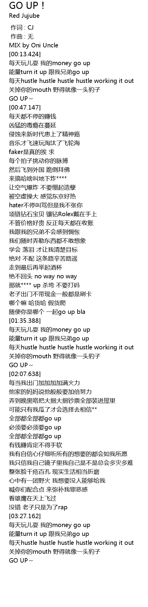 | [01:33.388] | 随便你是哪个 一起go up bla |