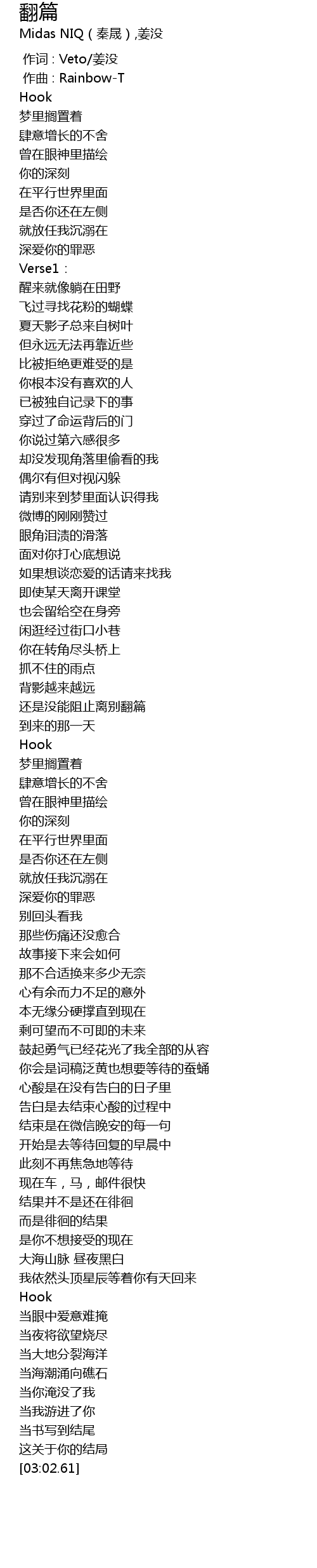 | [00:00.00] | 作词 : Veto/姜没 |
