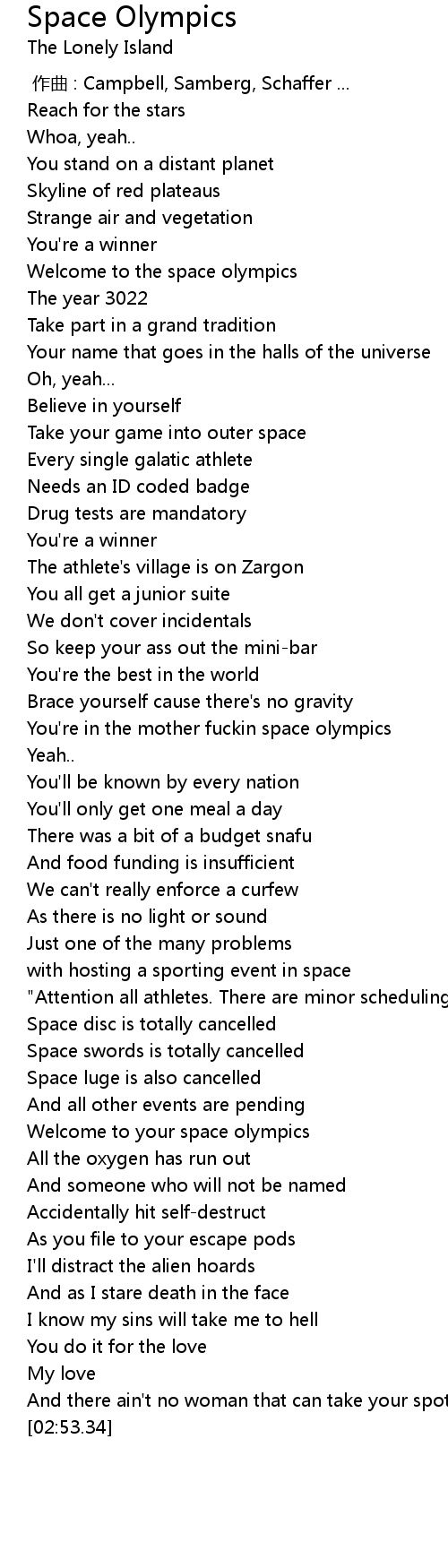 | [02:06.09] | "Attention all athletes. There are minor scheduling adjustments" |