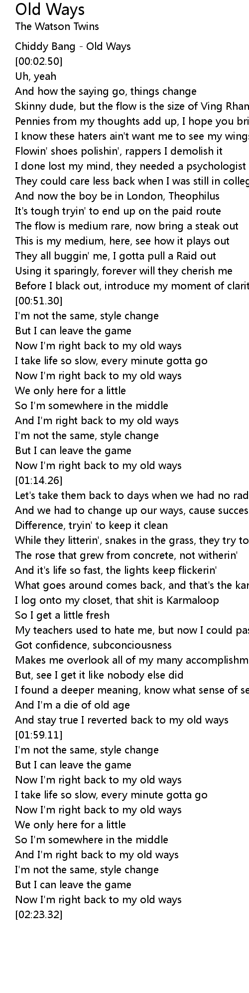 And stay true I reverted back to my old ways |