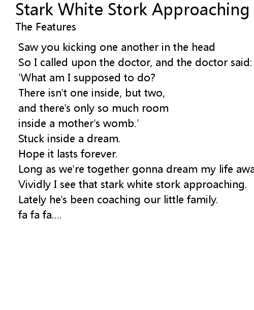 | Song | Stark White Stork Approaching |