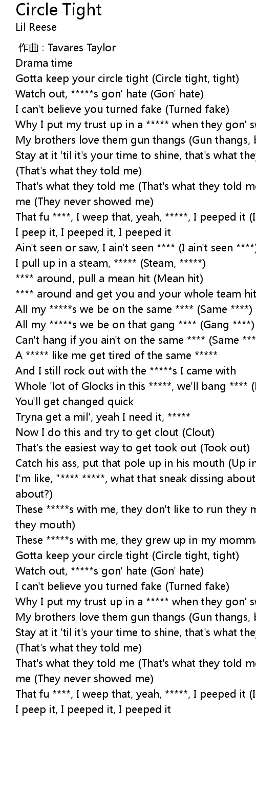 | [00:14.44] | Gotta keep your circle tight (Circle tight, tight) |