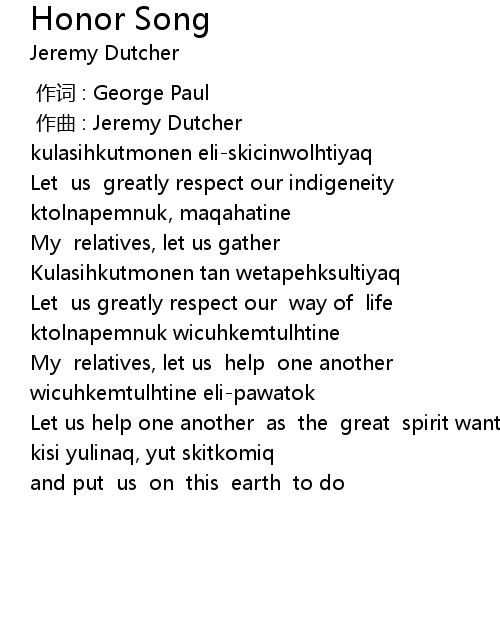 | [00:00.00] | 作曲 : Jeremy Dutcher |