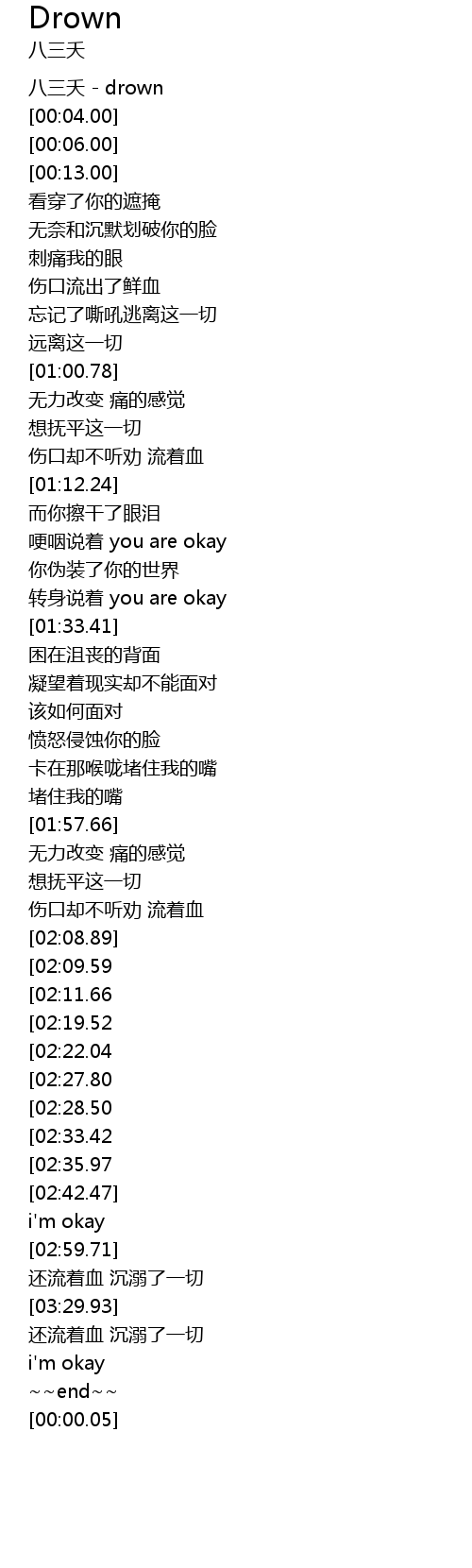| [03:44.15][02:11.66] | 哽咽说着 you are okay |