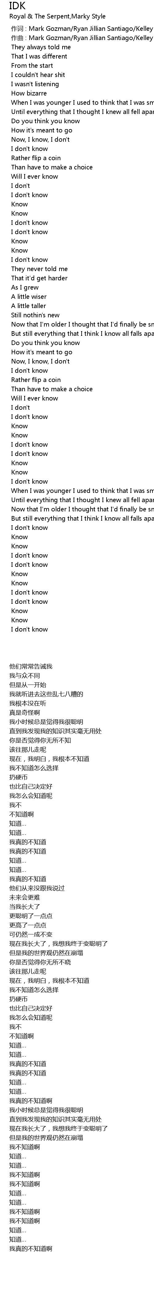 | Album | IDK |