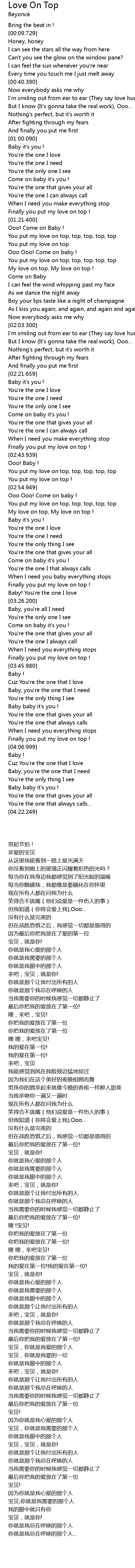 | [01:26.000] | You put my love on top, top, top, top, top |
