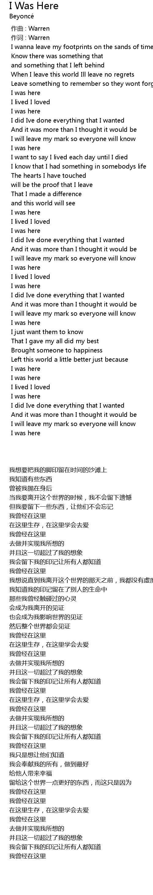| [00:27.130] | When I leave this world Ill leave no regrets |